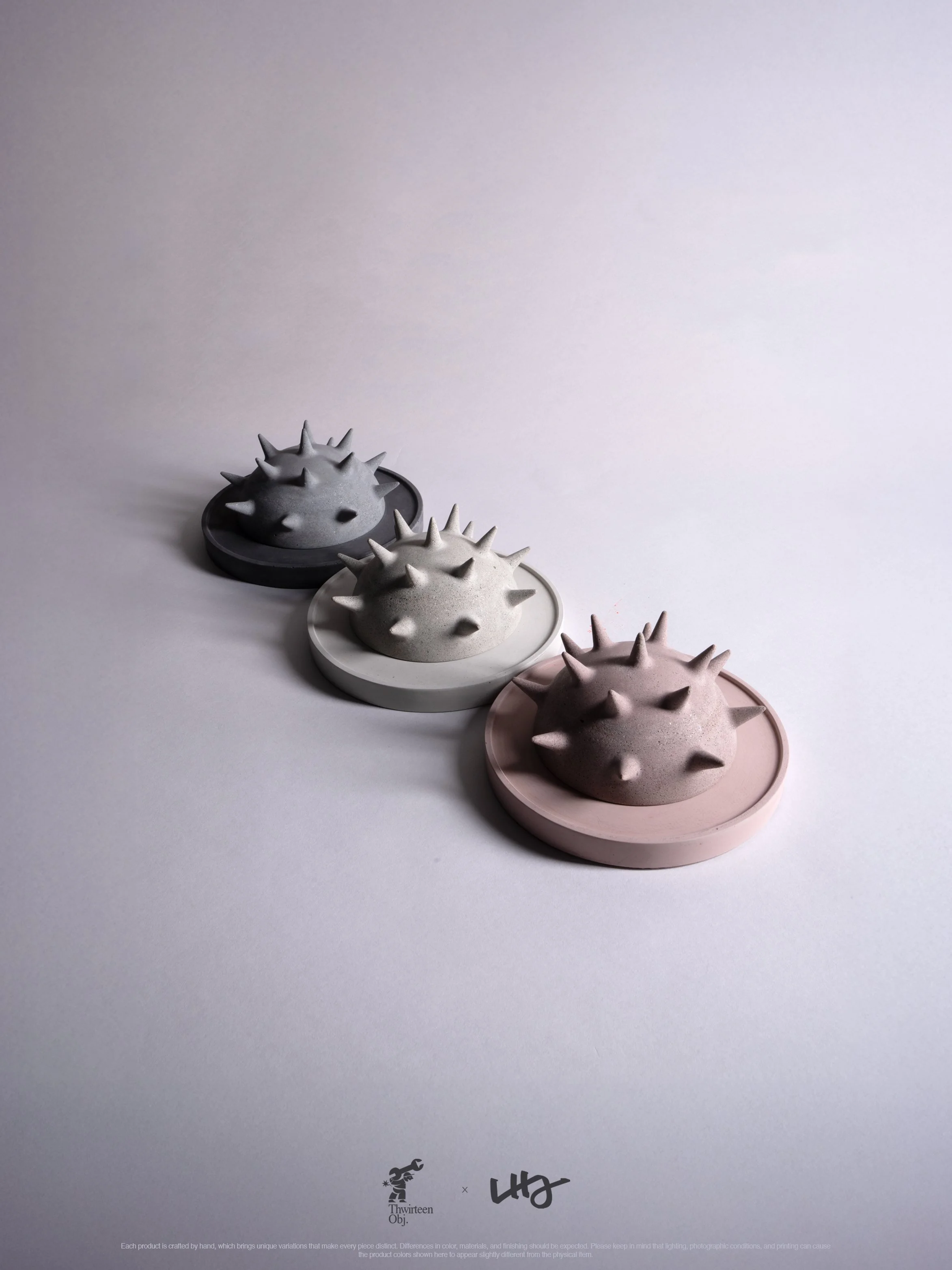 We returned to the drawing board together and refined the design, reshaping the spikes to be more curved so they would echo and complement the domeβs overall form. This shift softened the object while preserving its tension and structure. Once the form was finalized, we began fabricating molds and pouring concrete, allowing the material itself to play a central role in defining the final character of the piece.
